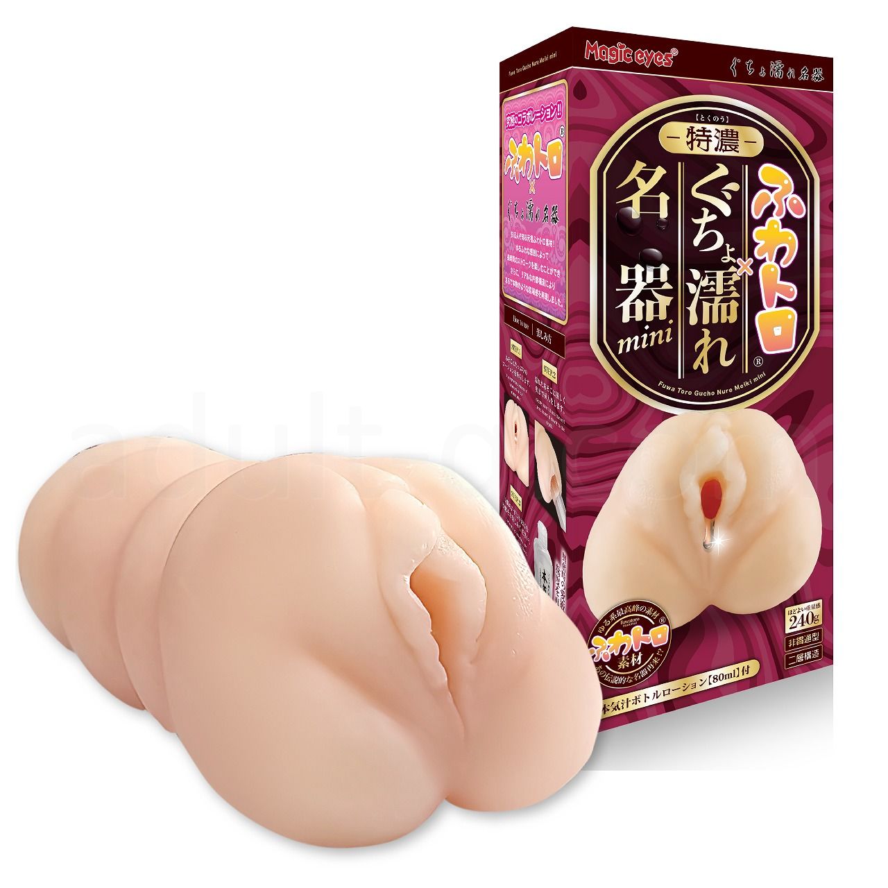 ゆるふわな感触により長時間ストロークを楽しむ「ふわトロ」と有機的な内部構造で搾り取る「ぐちょ濡れ名器」のリアル感を備えた、ふわトロとぐちょ濡れ名器のコラボレーションオナホールです。