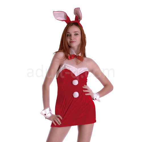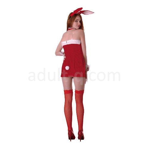 バニーガールコスチュームの基本、蝶ネクタイ&ウサ耳&カフスはそのままに、サンタクロースをセクシーに大幅アレンジ。