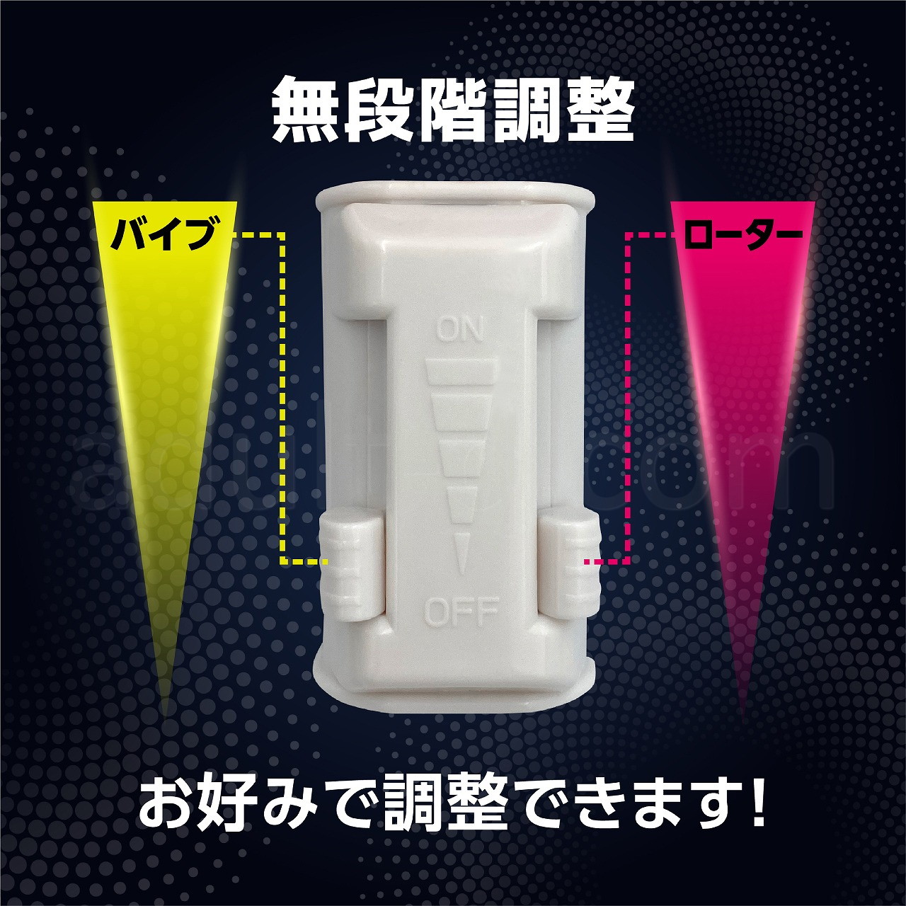 親機は、ビラビラの付いた団子が二段になった形状になっておりGスポットを効率的に刺激します。また、フレキシブルになっているのでお好みに合わせて角度を調整しご使用下さい。