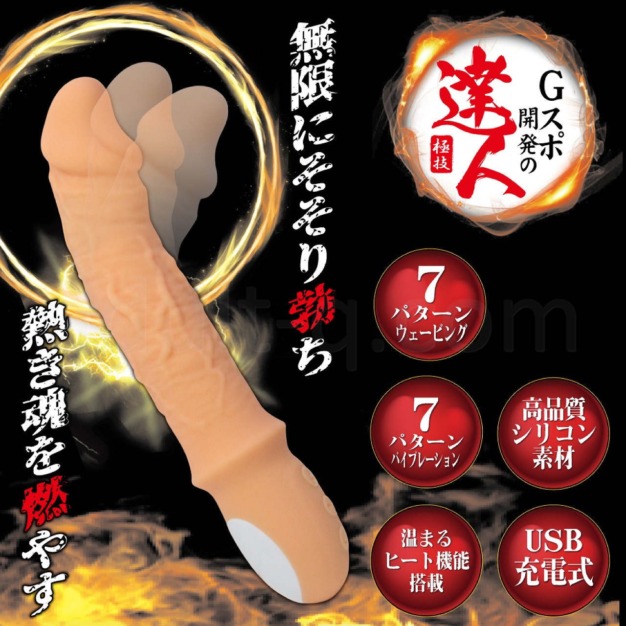 激しいウェービング・同時に先端部が振動・更に先端部が温まる、即堕ち必至の刺激を与えるバイブです。